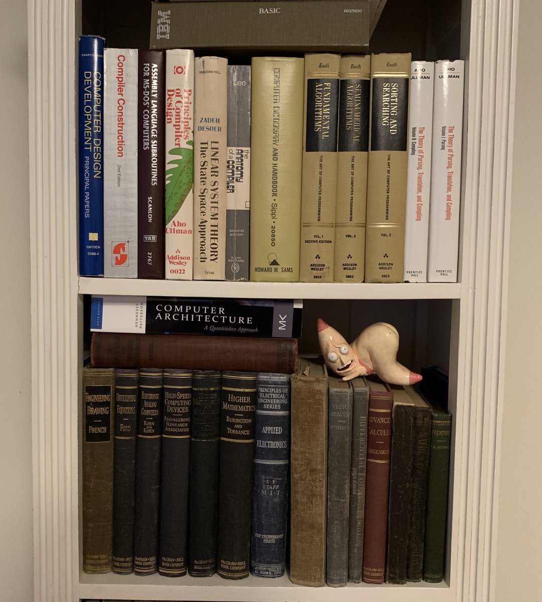 These are my favorite two shelves of my bookshelf, and yes that’s a slug Jerry. Show me your bookshelves, doesn’t just have to be tech books :) (most of these are from my grandpa :)pic.twitter.com/0qiqytAYuL