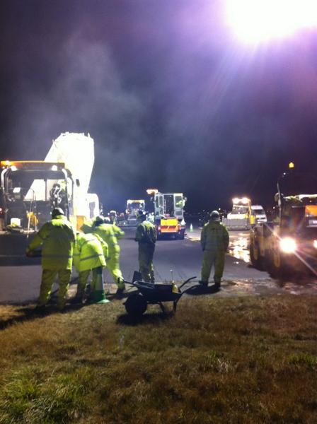 The night crew resurfacing the runway and using iPads to help perform the work. #neatpic.twitter.com/N4ZXSRWe
