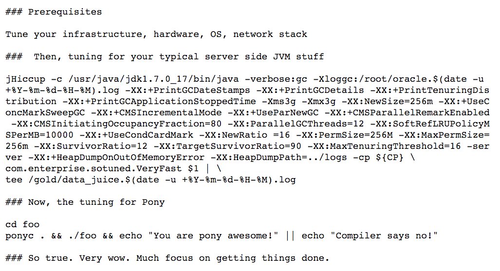 Helpful @ponylang perf tuning infographic compared to JVM. JVM ~800 tunables. Pony? 7, so we're removing some. \o/pic.twitter.com/XvzSAsjhR8