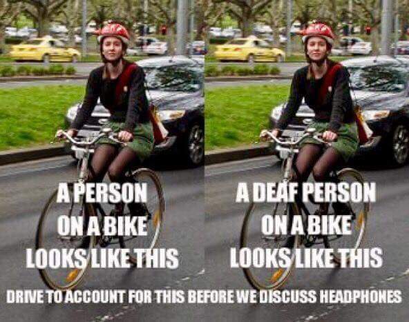 Bugger, as a hearing impaired pedestrian I never considered the possibility of a deaf cyclist. I may owe karma/beers...