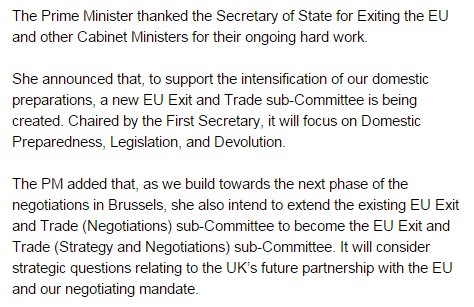 Exciting Cabinet meeting as PM creates new Brexit sub-committee, chaired by Damian Green, and renames another pic.twitter.com/nSs1MwuZgt