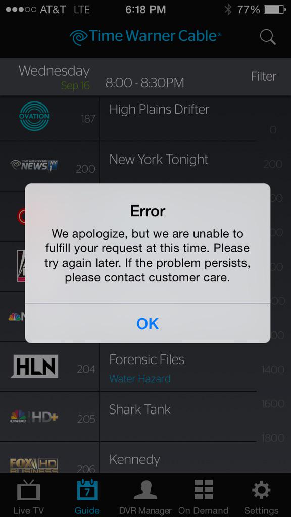 @twc_help What's up with this? Trying to set a recordinh from the app and keep getting this error. Thoughts?pic.twitter.com/FvlTubJl4N