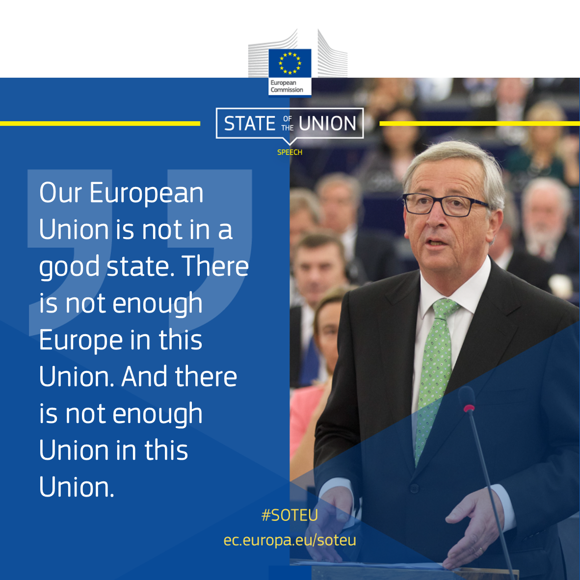 European Commission @EU_Commission"There is not enough#Europe in this Union"@JunckerEU on the State of the Union#SOTEU pic.twitter.com/k4R7ZKo3st1 retweet 0 favorites -