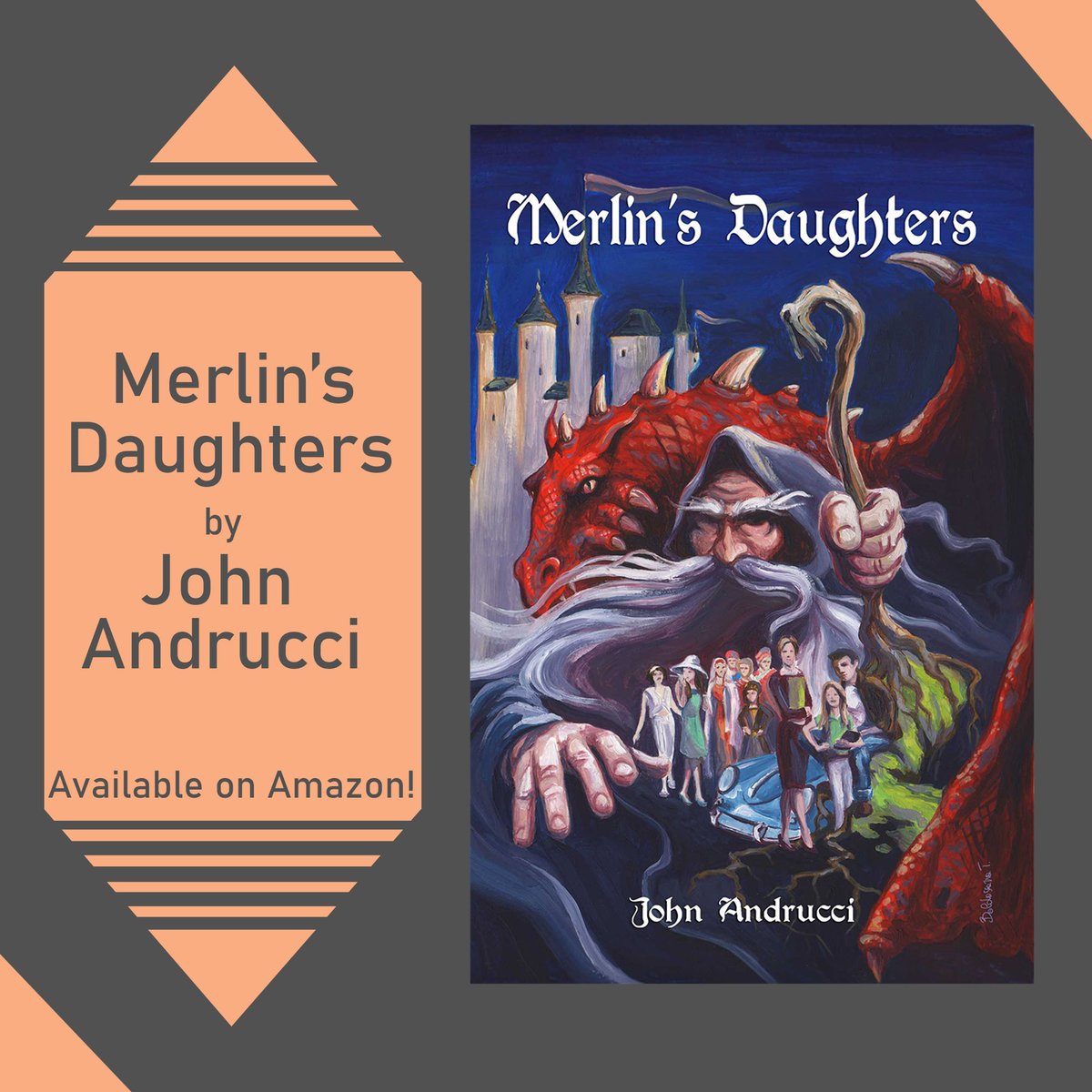 The cover art (shown here) by Dario Cavada & Tommy Baldassarra sets the tone for MERLIN'S DAUGHTERS, a fantastical adventure that takes you on a ride back to Camelot. Available on Amazon in both Kindle and print versions!