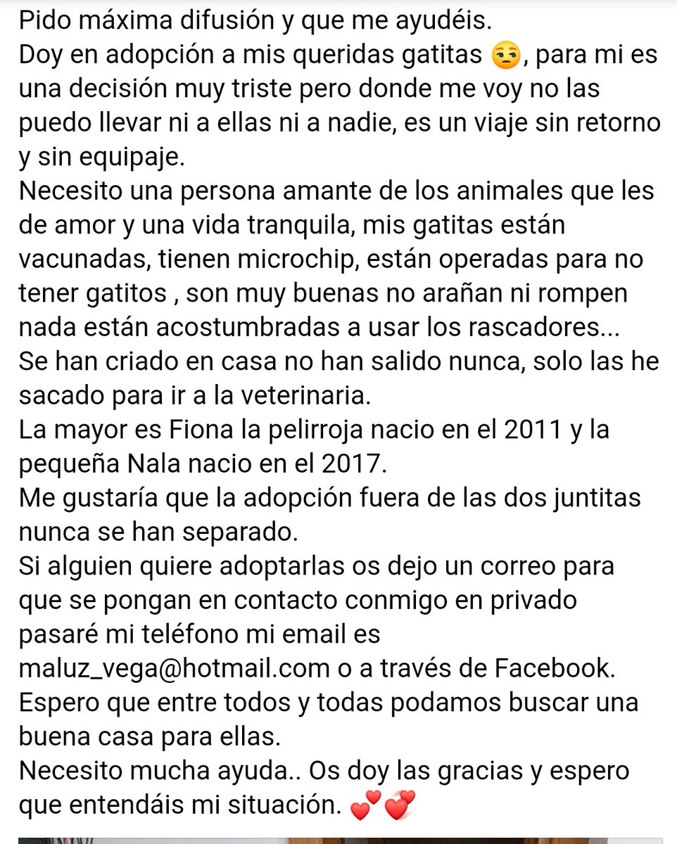 Muy muy urgente.. una mamá humana que se ve de este mundo busca el mejor de los hogares para sus gatas