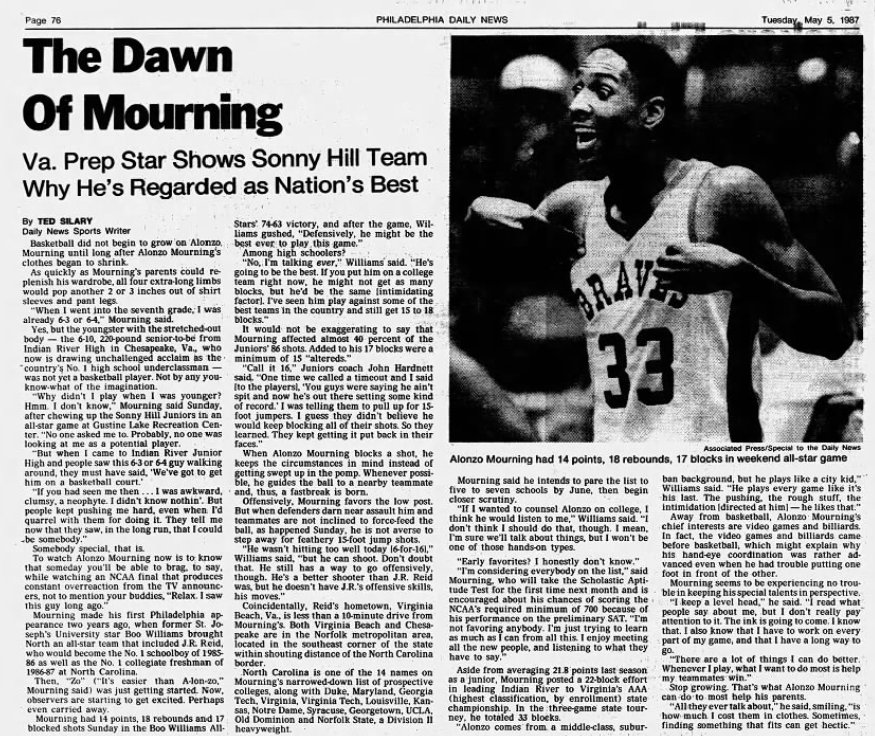 30 Years Ago Today: Philadelphia Daily News article on a kid named Alonzo Mourningpic.twitter.com/uJ26t6Qkl2