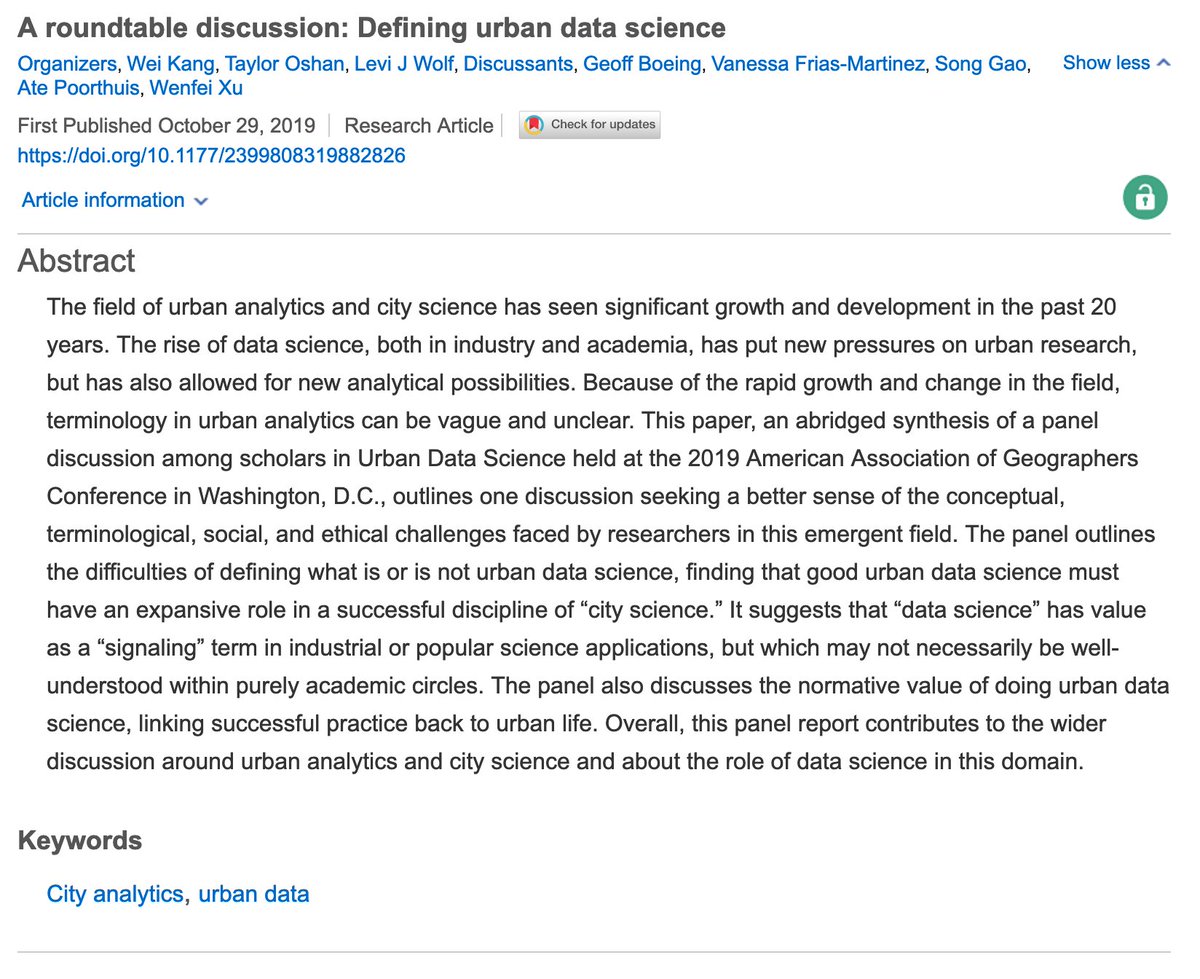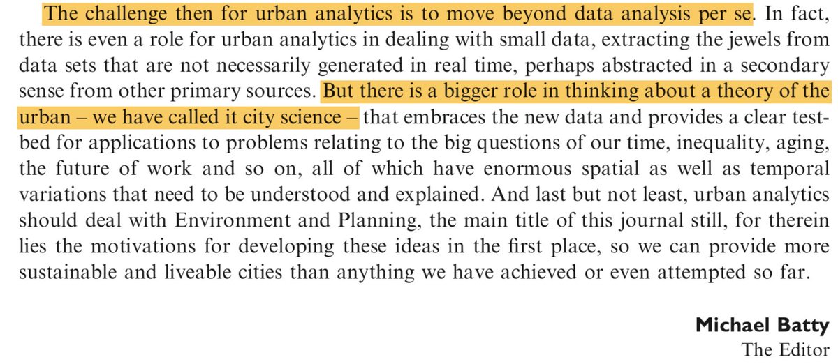 @jmichaelbatty defining "Urban Analytics", which directly brings up its connections to city/urban science https://journals.sagepub.com/doi/full/10.1177/2399808319839494 …pic.twitter.com/RPM8IJ7vsE