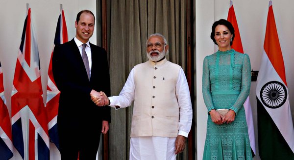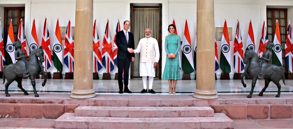 @narendramodi receives the Duke and Duchess of Cambridge at Hyderabad House (Images: MEAIndia)pic.twitter.com/D4uzv7SV9r