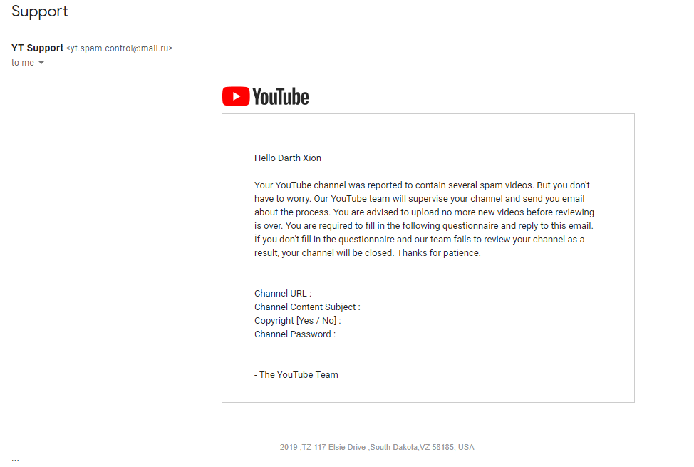 @YTCreators I received a suspicious looking email claiming to be from YouTube suggesting that I had been reported for spam... Could you confirm whether this is genuine or not?pic.twitter.com/o2Rc5PEEnT