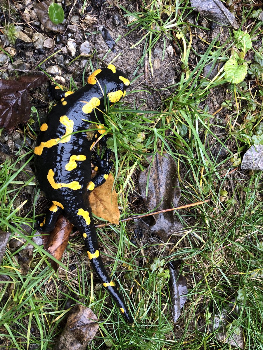 #Feuersalamander auch "Regenmännchen" genannt, sind aus ihrer Winterstarre erwacht. Jeder ist anders gezeichnet und doch sehen sie auf dem 1. Blick gleich aus.#Waldpädagogikpic.twitter.com/XWZtuLmImh