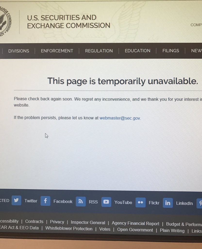 what is going on? SEC website down as well