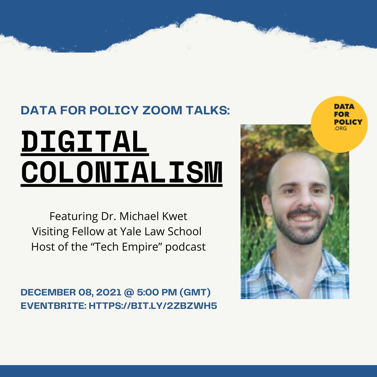 @dataforpolicy event this 8th December: ‘Digital Colonialism: the Evolution of the US Empire” – talk by Dr@Michael_Kwet. Hosted online by@ucl Critical Digital Studies Reading Group (orgs@NaiKalema@EntsmingerJosh); Q&A at the end. Info below