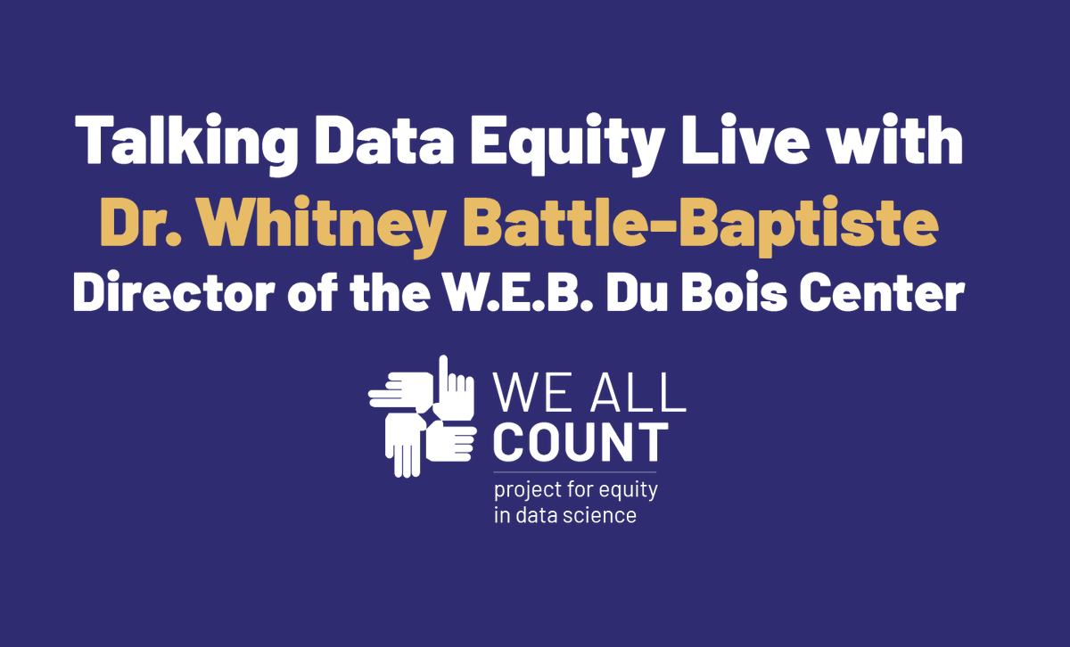 Today at noon! Live data equity Q&A with Dr. Whitney Battle-Baptiste Director of the W.E.B. Du Bois Center! Register here for free: https://weallcount.typeform.com/to/g6DAQMjE pic.twitter.com/tuQX5PscyB
