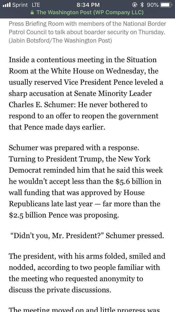2. Anything that comes out of the Senate has to be bipartisan. The Senate unanimously passed a funding bill without wall funding a few days ago. McConnell could do it again. He’s not because his loyalty to Trump is stronger than any pressure he feels to end the shutdown.