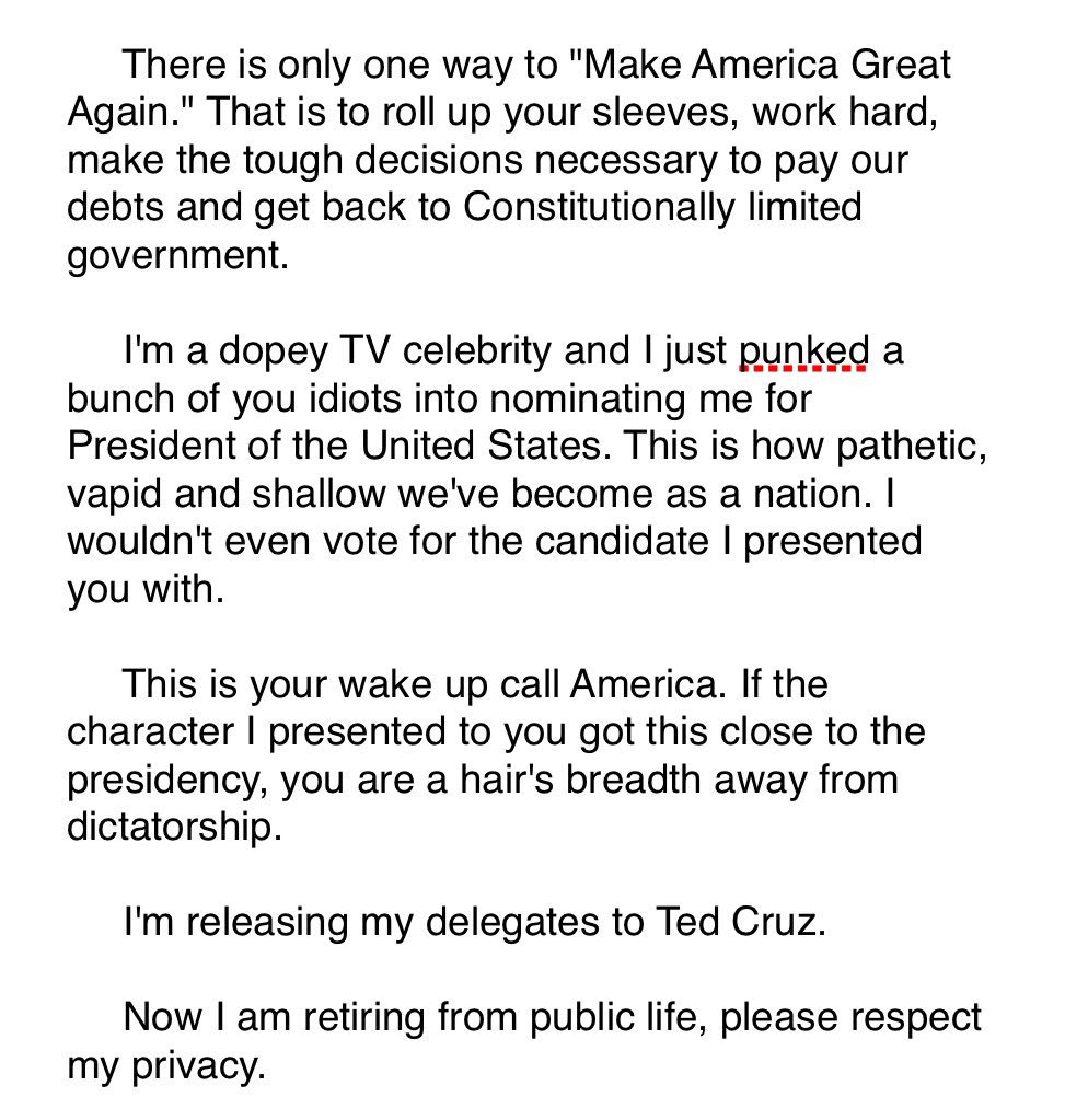 The only way for #Trump to be a great American now? He makes this announcement. @davekopelpic.twitter.com/PdK8YQ3c4J