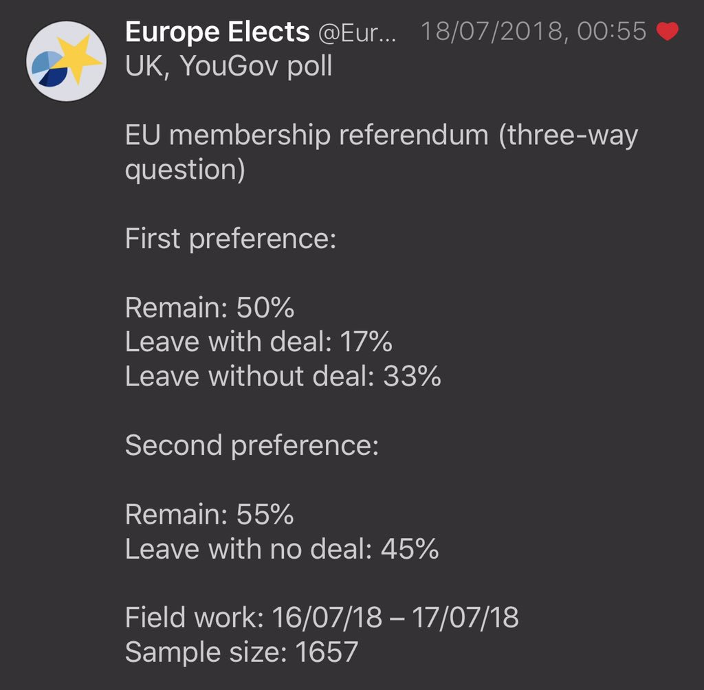 The will of the people, July 2018: 55% Remain, 45% Brexit (h/t: