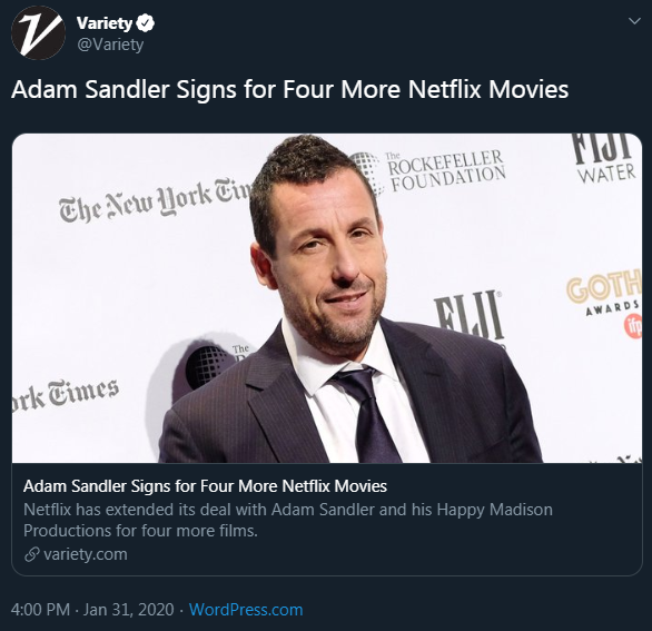 Got to respect Adam Sandler here. For once I actually welcome the huge sloppy steaming shit he will soon be firing right into our eyeballs.pic.twitter.com/sxRg5KJuME