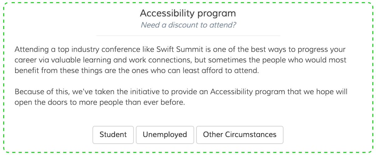 Do you know someone who could benefit from our Accessibility Program? Help spread the word! http://www.swiftsummit.com/tickets pic.twitter.com/TiFWfXshCE