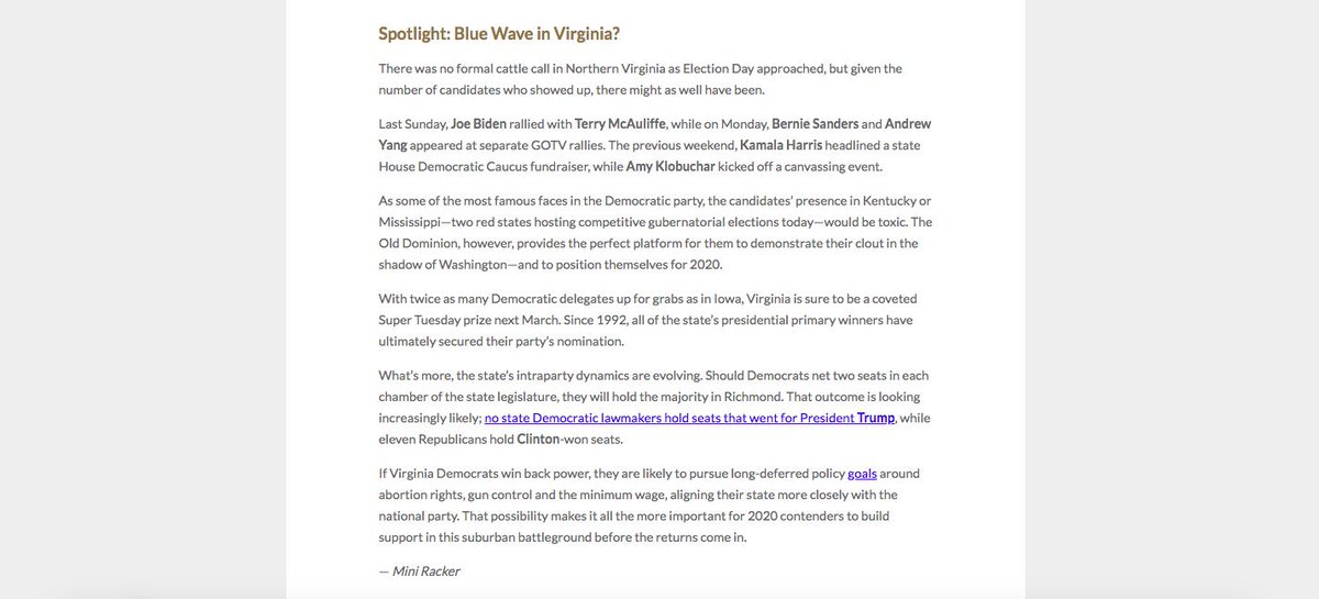 It's Election Day 2019! Read my Spotlight to find out how the 2020 candidates handled that in VA. (Two tidbits that didn't make it in: