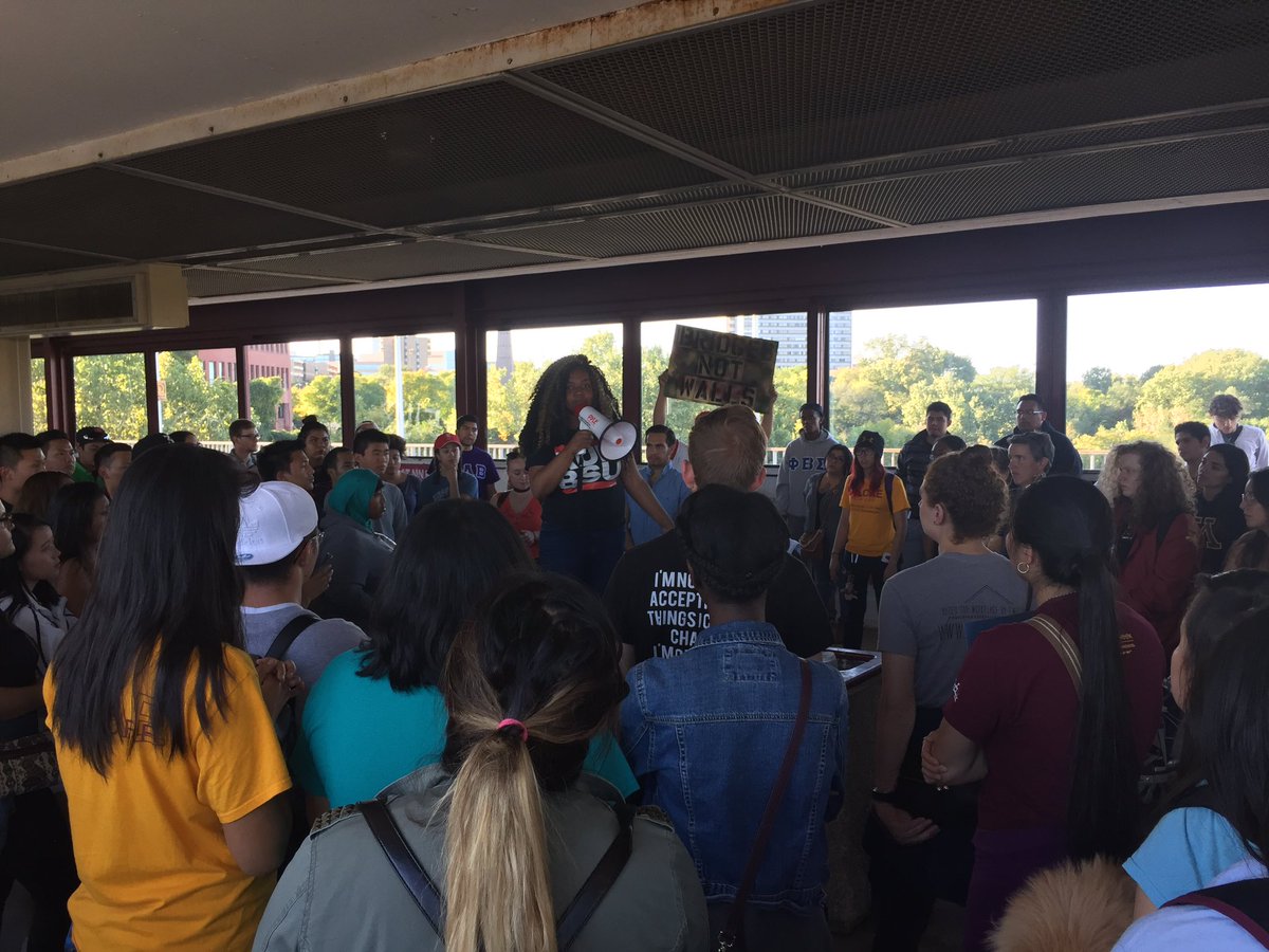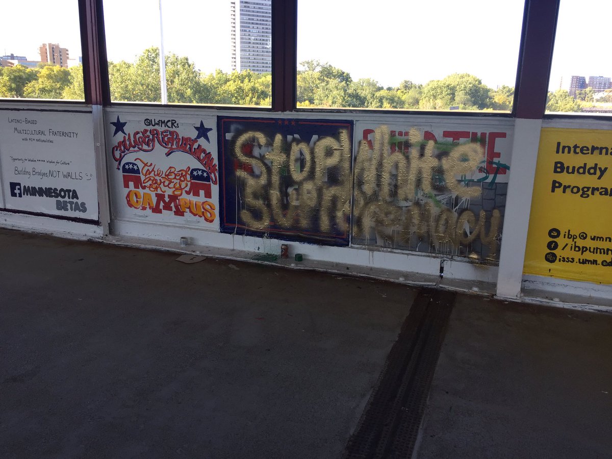 Crowd now being urged to file a grievance to student union and activities office in response to painting. @mndailynewspic.twitter.com/Gv3LJ0JVaW