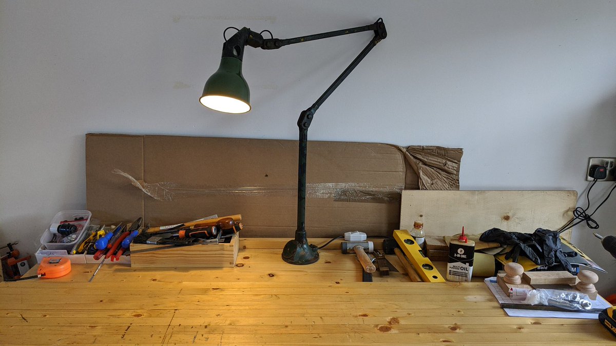 Let there be light! Rewired this morning and popped an inline rocker switch on as well. Really enjoyed bringing Dad's old lamp back to life. It is now taking pride of place at the centre of my work bench.pic.twitter.com/JFkTkfMGoS