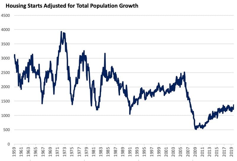 9. Frozen Cities Construction has slowed in major cities because of restrictive zoning policies. In 1970, Los Angeles was zoned for 10 million people. By 2010, the city was zoned for only 4.3 million people. The rate of new housing developments has fallen since the 1970s.pic.twitter.com/8opbiKoeVm