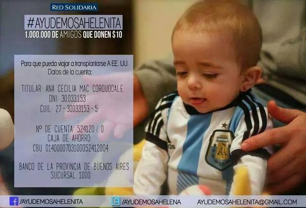 @davidbisbal Una ayuda a Helenita: necesita U$S 1 M para un transplante. RTpic.twitter.com/alMyc2lawQ