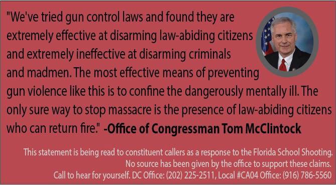 #CA04@RepMcClintock has many notches on his#NRABloodMoney belt. He’s taken over $90K from the#NRA Following the#Parkland shooting, he issued this statement:pic.twitter.com/86zx1NFFkE