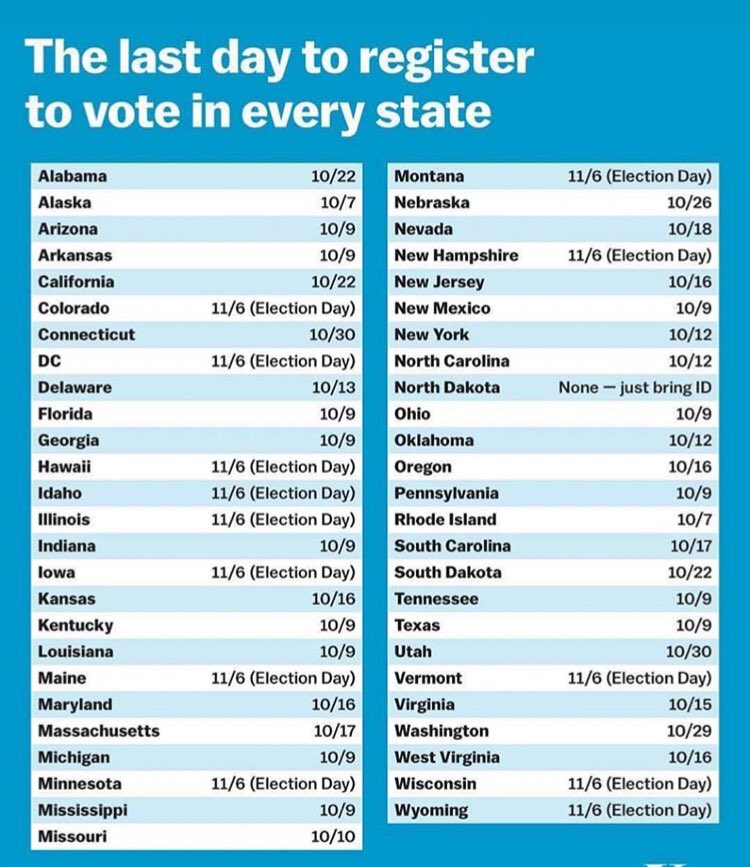 You.@davidhogg111 Oct. 9th is the Deadline to register to Vote in these 13 States.