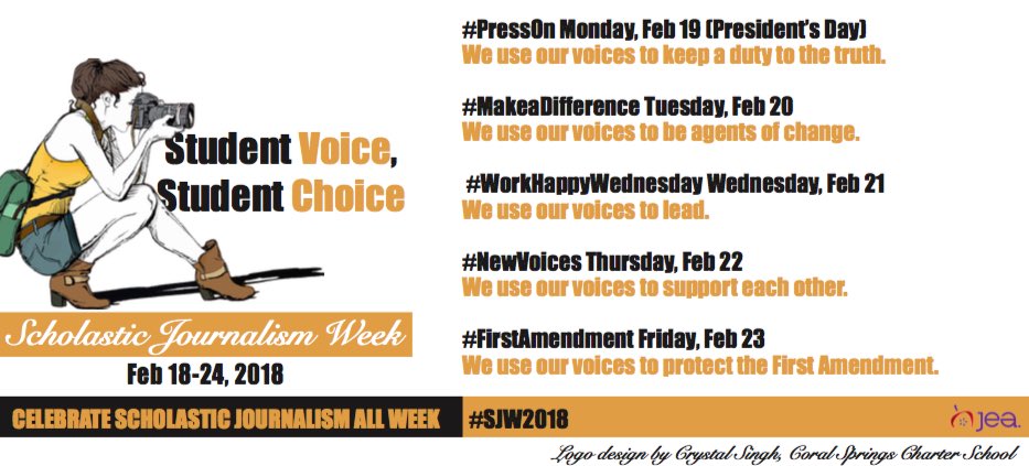 @davidhogg111 ! Next week we celebrate Scholastic Journalism Week and we will honor you and your work and the work of thousands of young journalists across the country.#PressOn#MakeaDifference#WorkHappyWednesday#NewVoices#FirstAmendment#SJW2018pic.twitter.com/GCfCh6ejdC