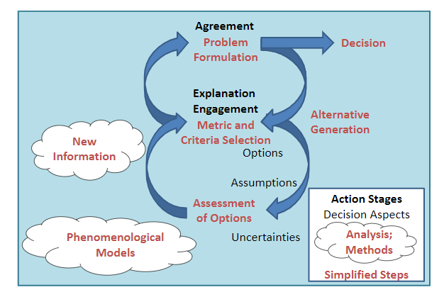Steven has his standard diagram for how the process works, but I like one I made for my dissertation more. https://www.rand.org/pubs/rgs_dissertations/RGSD408.html … (Perhaps I'm biased.) RDM says not to get stuck on agreement on the analysis, and start from criteria selection and alternative generation instead.pic.twitter.com/LMtnRtaiLc