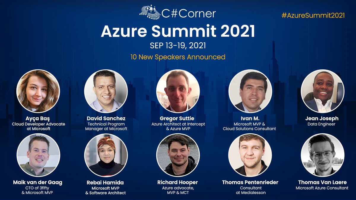 #AzureSummit2021 announces the next 10 speakers for this year's edition. Every week 10 new speakers will be announced. Stay tuned!!! Register at http://azuresummit.live@CsharpCorner@Azure#AzureSummit#Azure#Microsoft#AzureSQLpic.twitter.com/5G69tEtmw7