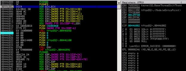 This is the screenshot when I am on CALL EAX instruction. It is certainly not pointing to CreateThreadpic.twitter.com/jT2mkdylvM