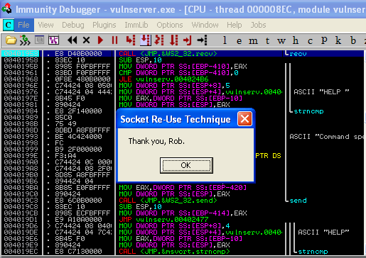 From a long time I wanted to understand well and learn by doing hands-on how to use Socket Re-use technique in exploiting smaller buffer space. Thank you