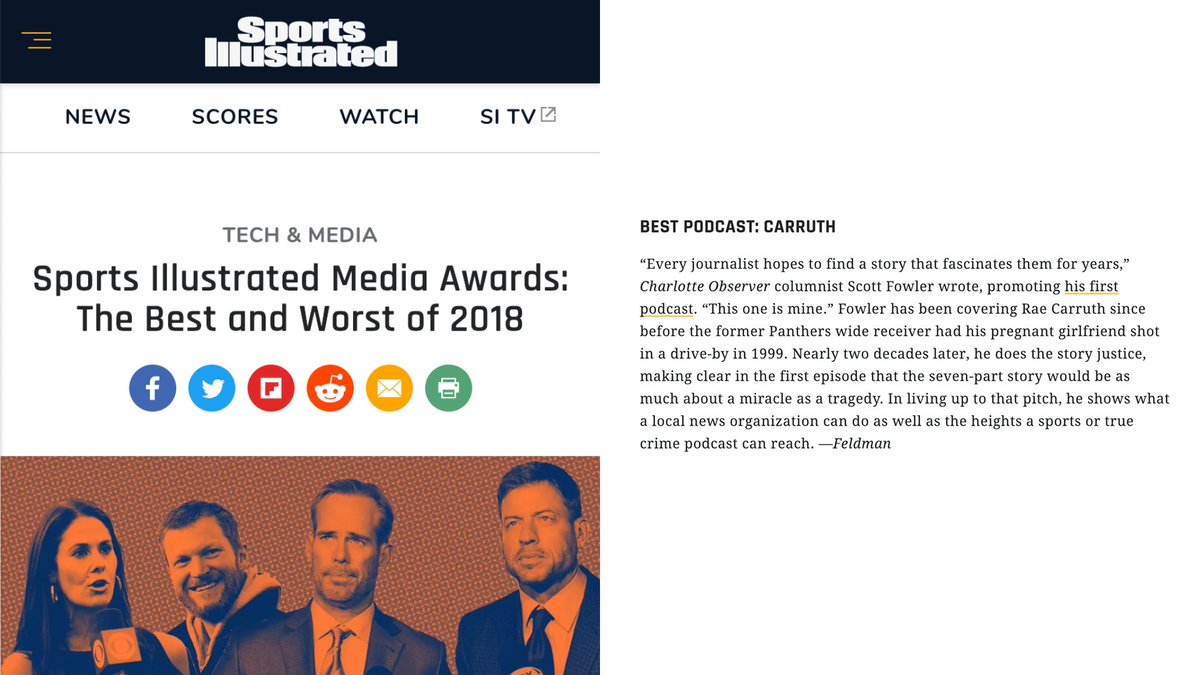 Humbled to find out Sports Illustrated has chosen "Carruth" as 2018's best podcast. Our dedicated