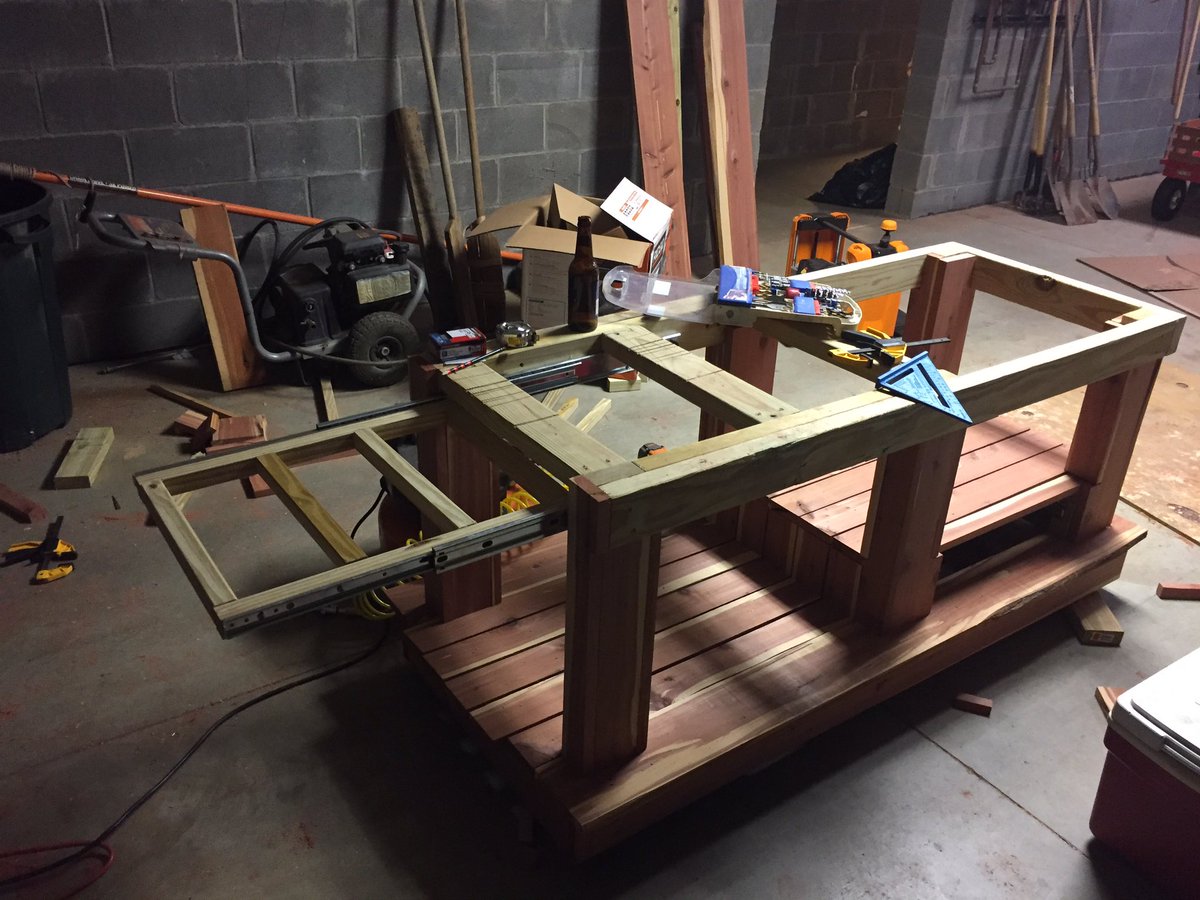 #BGE table in the works and another problem to solve. Got the sliding tray in place and now need to figure out the hidden lighting.pic.twitter.com/o0LuHXLBPI