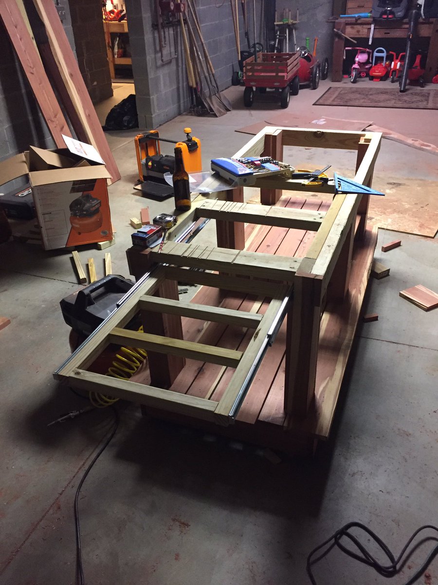 Boom! Ended the night wrapping up the additional sliding counter frame that will hide under the main work space.pic.twitter.com/s6tHmptEj0