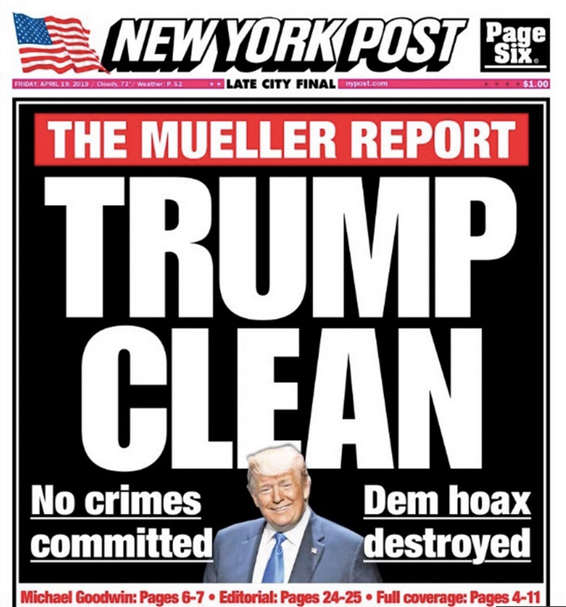 Reporter: "Mr. Attorney General, the President has just shot someone on 5th Avenue." Barr: "The president was frustrated and angered by a sincere belief that the investigation was undermining his presidency, propelled by his political opponents, and fueled by illegal leaks."