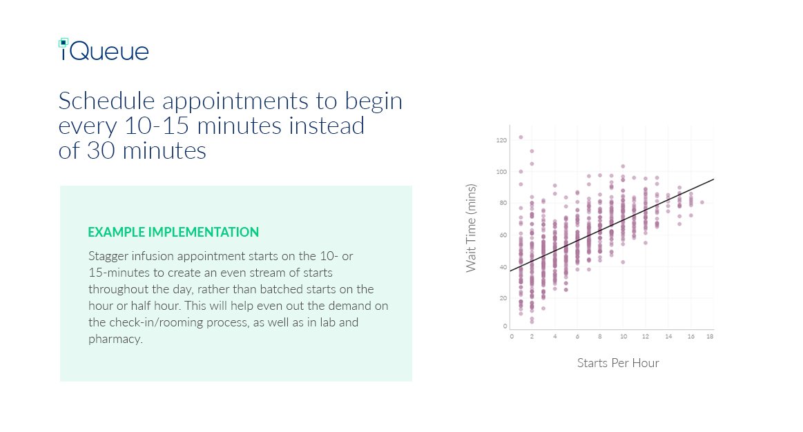 Make appointments beginning every 10-15 minutes not every half hour! Visit: Infusion Centers Best Practices (8/10)→ http://ow.ly/qsQX30bl4En pic.twitter.com/XopAmWkdrm