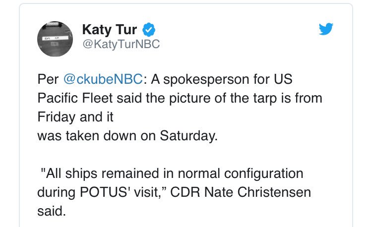 This is a false narrative: The name of USS John S. McCain was not obscured during the POTUS visit to Yokosuka on Memorial Day. The Navy is proud of that ship, its crew, its namesake and its heritage.