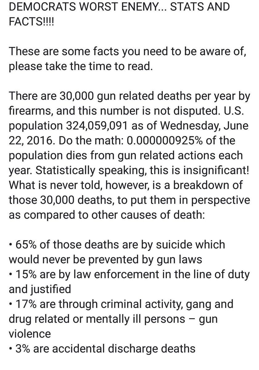 Average # of deaths per day in US: Abortion: 1,778 Heart disease: 1,773 Cancer: 1,641 Medical error: 685 Accidents: 401 Stroke: 401 Alzheimer's: 332 Diabetes: 228 Flu: 150 Suicide: 128 Opioids: 115 Drunk driving: 28 Underage drinking: 11 Teen texting-and-driving: 8 All Rifles: 1