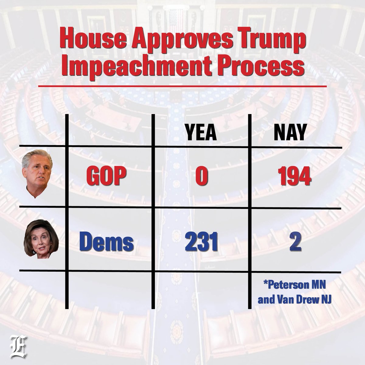 Alternate headline: "House Republicans united while dems break ranks on impeachment vote"