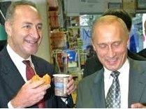 Who the heck is this? Democrats Need To Explain This Picture --Vladimir Putin having a doughnut and a coffee with New York Senator Chuck Schumer. It's Real!pic.twitter.com/b7dTVaWRRI