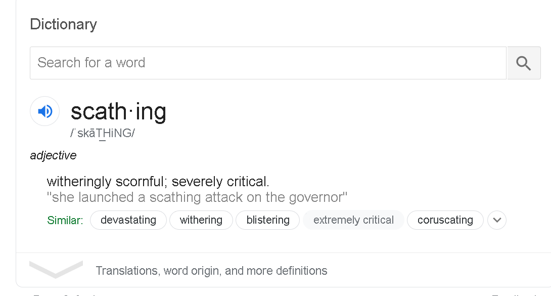 “Scathing” oooh