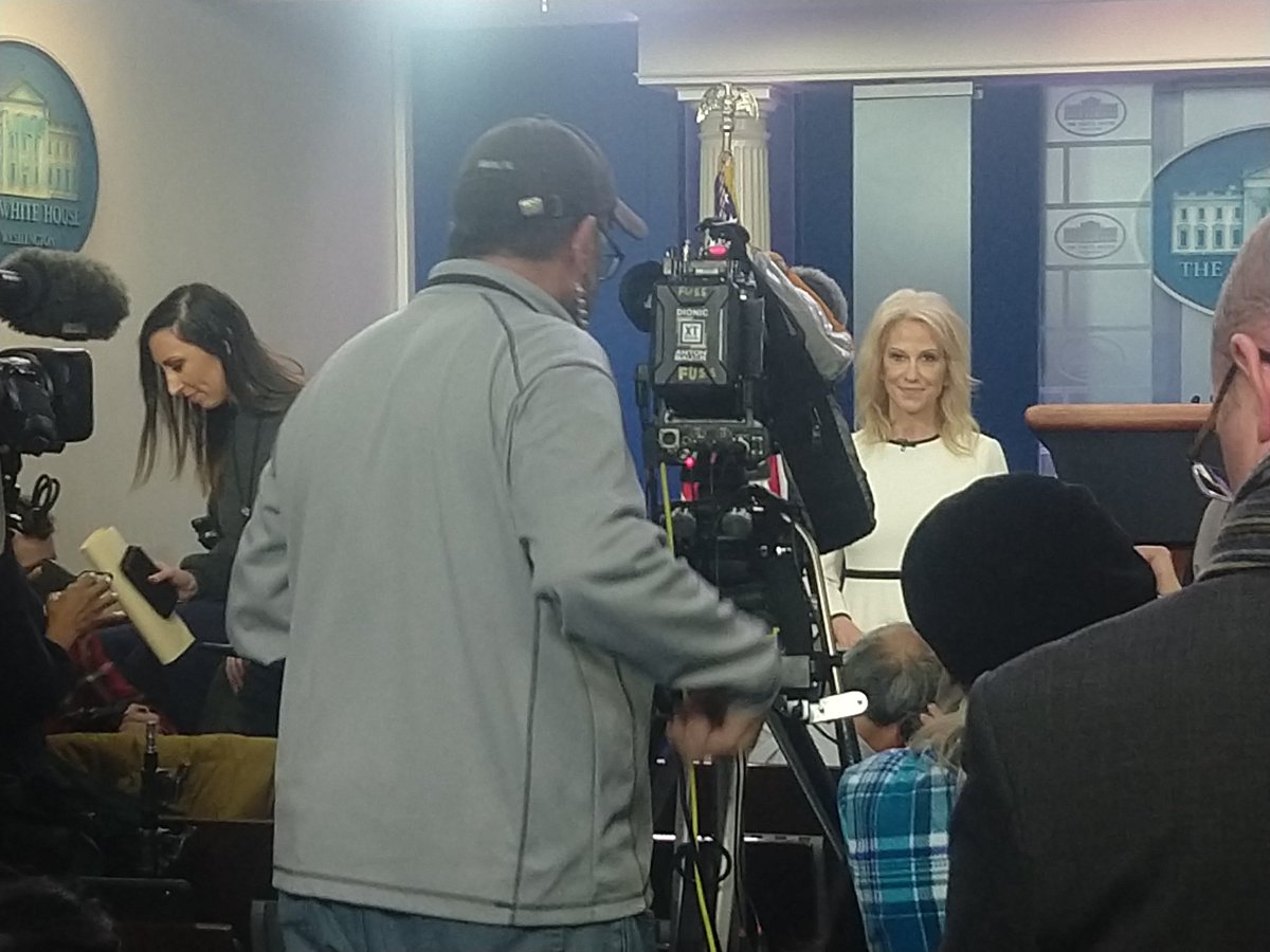 Kellyanne Conway in the briefing room, not doing a briefing, says: "The president is fine. His mood is good." pic.twitter.com/ozSanxDilH