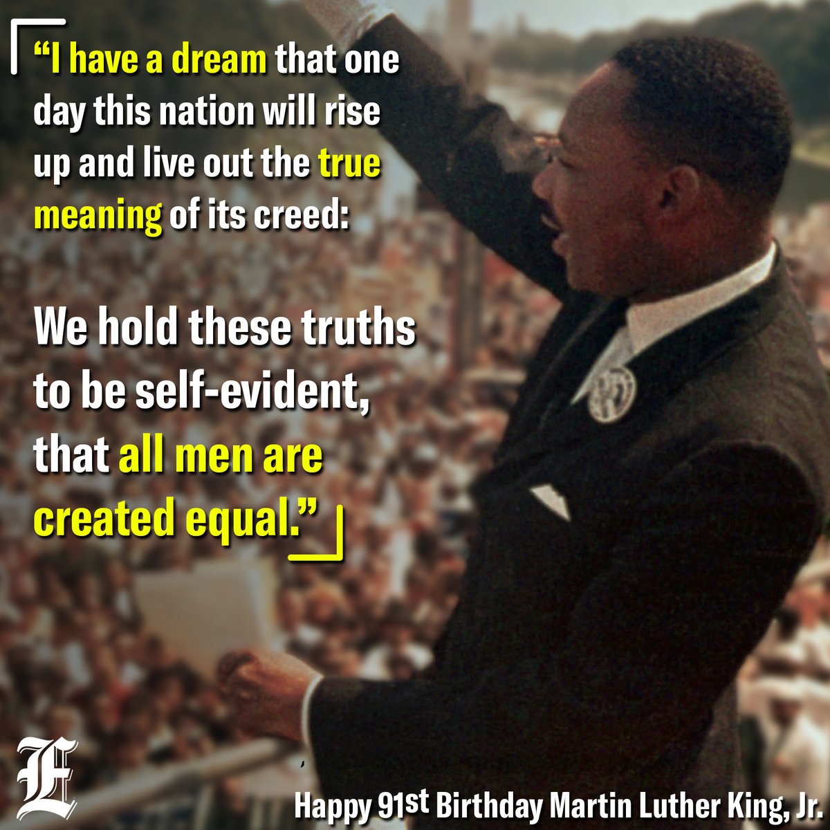 Today would have been Martin Luther King Jr's 91st birthday. A leader of the civil rights movement, MLK improved the lives of millions of black Americans.pic.twitter.com/xsndX9smzZ