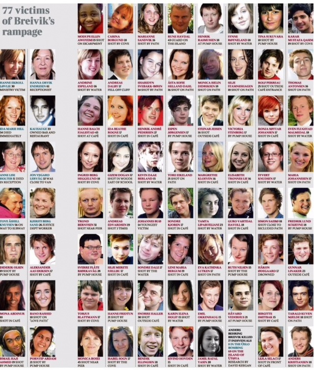 Norway PRO-GUN RIGHT-WING MASS MURDERER Anders Breivik MURDERED 77 children at a camp for union members, he HATED UNIONS/LIBERALS. Breivik has been releasing statements cheering