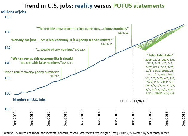 POTUS changed his talking point (green). The inherited job-growth trend (blue), not so much.pic.twitter.com/qXQ1EsUTdz