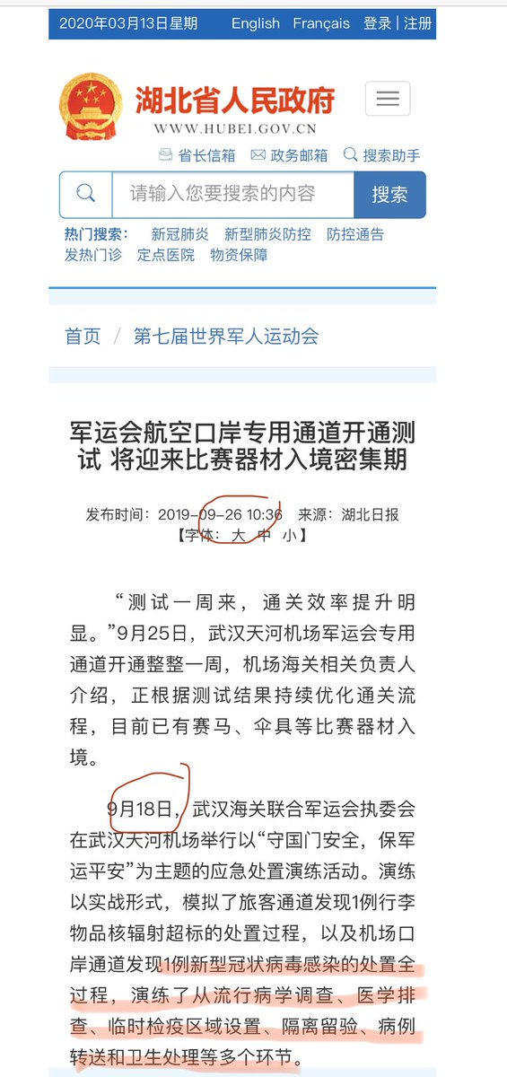 Wow, making accusation w/o evidence? How about🇨🇳explain👇🏼 The Military 🌎Games was held 18-27/OCT 2019 in Wuhan In a drill on 18/SEP, 1 task is ‘discover a NEW CORONAVIRUS INFECTION in airport’ n practice the protocol a P4 lab in Wuhan experimenting w highly pathogenic microbespic.twitter.com/JJKPUoHemK