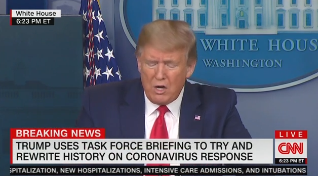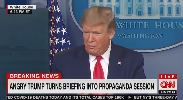 CNN accuses "angry" @realDonaldTrump of turning briefing into a "propaganda session" after playing a video montage of praise for the admin's efforts against the coronavirus.pic.twitter.com/65UhVVH8mT